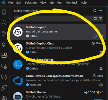 I Visual Studio Code, installerer du de to gratis extensions GitHub Copilot og GitHub Copilot Chat: